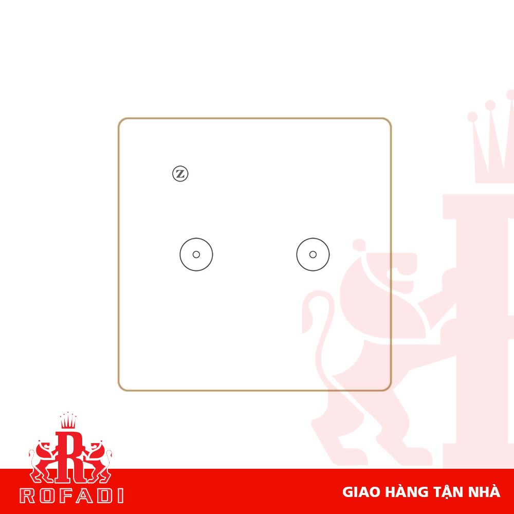 Công tắc Zigbee vuông (viền vàng- icon 2 vòng tròn + icon Z) dòng Kaz 2 phím màu trắng